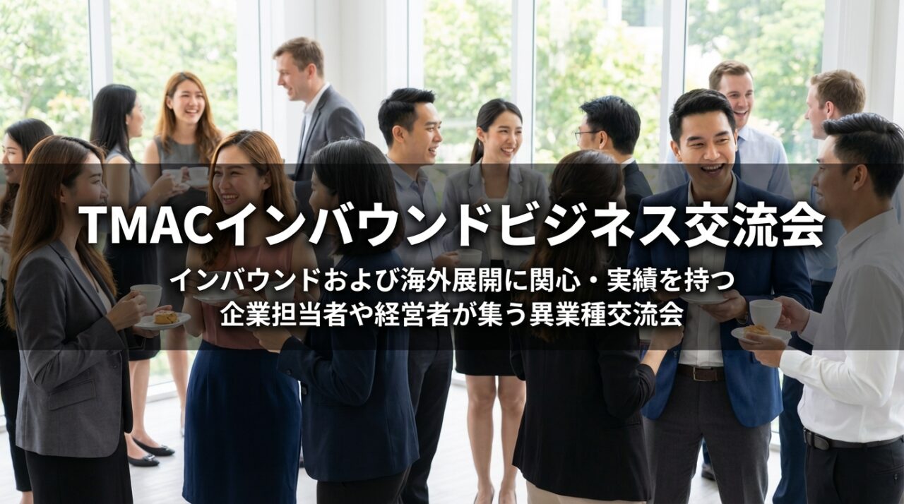 TMAC(ティーマック)インバウンドビジネス交流会では、 インバウンド事業に携わる事業者のための 異業種交流イベントを定期的に開催しています。 単なる名刺交換にとどまらず、 事業者同士が信頼を築き、 将来につながる価値ある関係が生まれることを目的とした 本質的な出会いの場をご提供します。